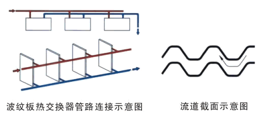 波紋板熱交換器具有合理的空間結構,良好的傳熱效率和排凝效果,板塊化單元結構,串并聯組合簡捷方便,運行性能可靠,是當今熱傳遞領域中一種新穎傳熱單元。